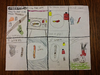 Today we finished our final projects for How to Eat Fried Worms, by Thomas Rockwell. Our final projects were illustrations of all 15 worms that Billy had to eat. I looked back in my book and took notes for each worm so that I could then just focus on my illustrations. If you had to eat a worm, how would you like it cooked?